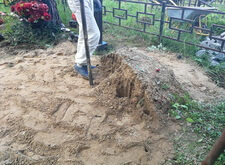 Подготавливаем основание под новые памятники, демонтируем старое надгробье.