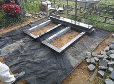 Устанавливаем общее основание для памятников, выставляем два одинаковых цветника. Площадь, которую планируется выложить брусчаткой, укрываем геотекстилем.