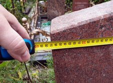 Нам предстояло заменить табличку с именем покойного памятником, который бы по дизайну походил на старое надгробье. Поэтому первым делом мы сняли замеры с уже существующей стелы.