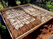 Затем укладываем на территорию места захоронения арматурную сетку, предварительно расстелив на участке геотекстиль.